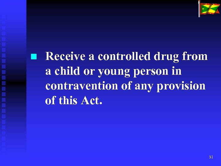 n Receive a controlled drug from a child or young person in contravention of any provision of this Act. 31
