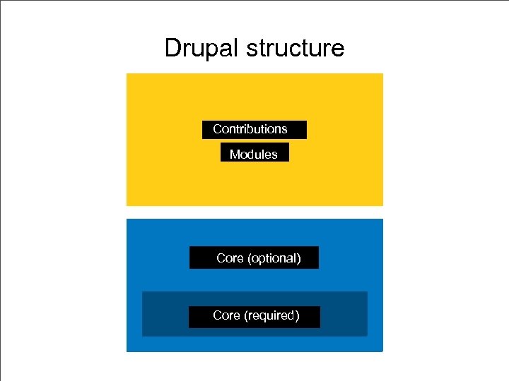 Drupal structure Contributions Modules Core (optional) Core (required)