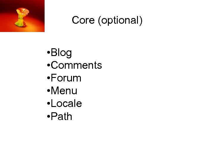 Core (optional) • Blog • Comments • Forum • Menu • Locale • Path