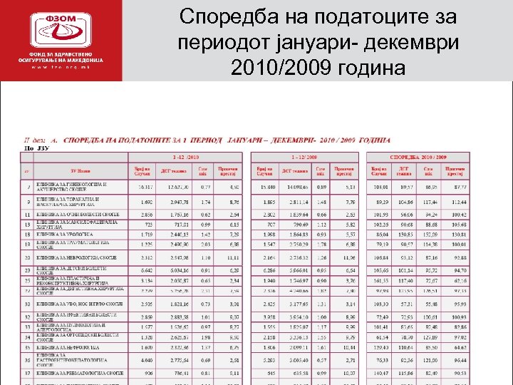 Споредба на податоците за периодот јануари- декември а 2010/2009 година