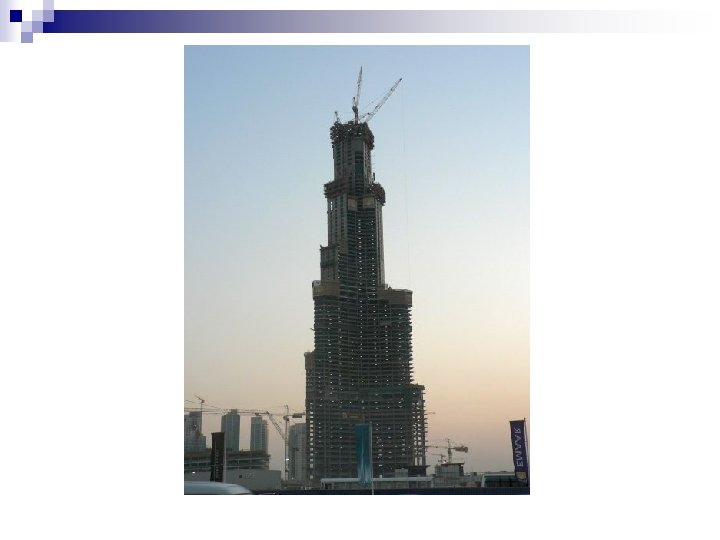 Emaar Properties is currently constructing what will become the world's tallest structure, the Burj Dubai. n The final height of the skyscraper is a closely guarded secret , but estimates so far point to a height upwards of 810 m. n Burj Dubai is expected to be completed in 2008 n