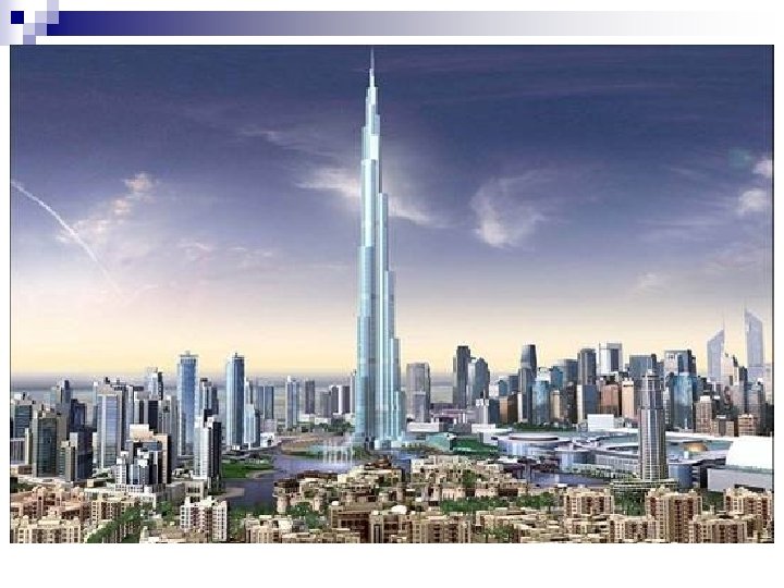 n The property boom is largely driven by many projects planned for Dubai. n Off-shore such as Palm Islands and The World (archipelago).