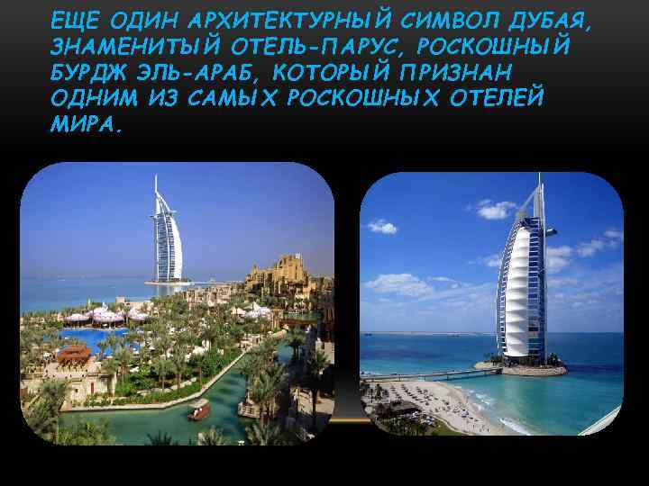 ЕЩЕ ОДИН АРХИТЕКТУРНЫЙ СИМВОЛ ДУБАЯ, ЗНАМЕНИТЫЙ ОТЕЛЬ-ПАРУС, РОСКОШНЫЙ БУРДЖ ЭЛЬ-АРАБ, КОТОРЫЙ ПРИЗНАН ОДНИМ ИЗ САМЫХ РОСКОШНЫХ ОТЕЛЕЙ МИРА.