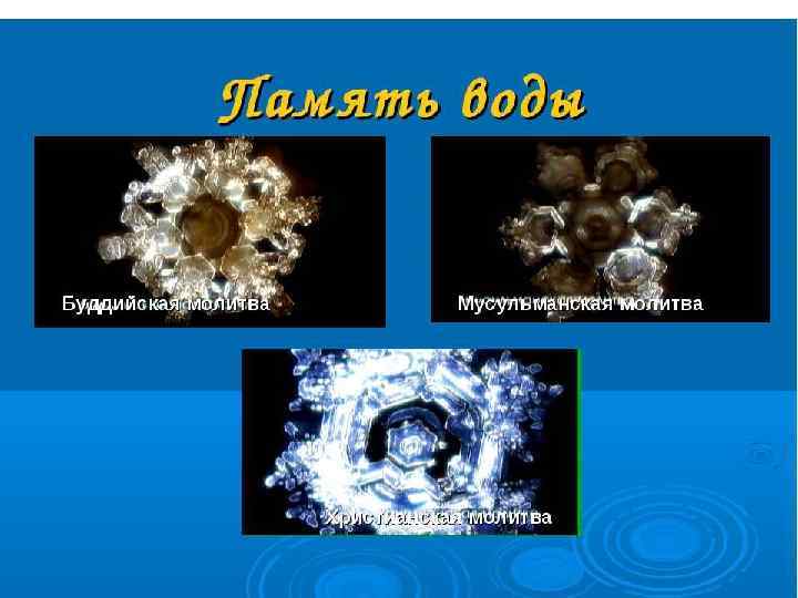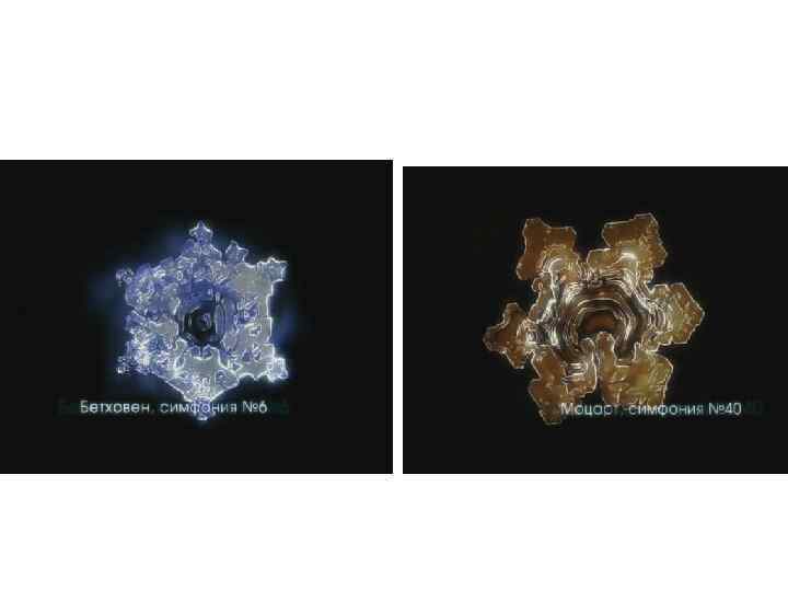 Дух и музыка • Бог, как и мир - един, а религий много, потому что в оформлении религий принимают участие люди и вкладывают в их содержание и исполнение «человеческий фактор» • Музыка, вызывающая резонансные вибрации души у людей разных национальностей, больше всего передает характеристики Духа. • Экспериментально доказано, что озвученная молитва формирует в воде, входящей в состав абсолютно всех продуктов, гармоничную структуру. (Г. В. Коротков, М. Эмото, ).