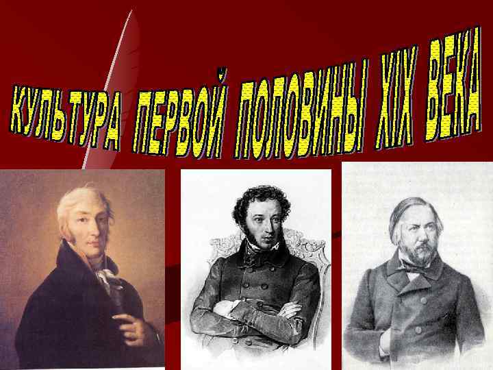 Два периода развития русской культуры первой половины XIX века • 1. Начальный этап русской классики – культура пушкинской эпохи, развитие русского романтизма • 2. 40 -50 -е годы XIX века – «гоголевский период» русской культуры, развитие русского реалистического искусства