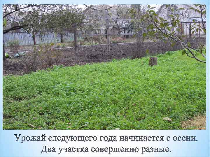 Участок засеян сидератами Участок перекопан осенью