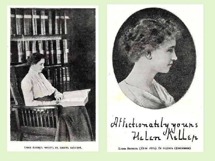 «Однажды я впервые спросила учительницу: "Что такое любовь? " Я тогда ещё не знала многих слов, но это слово я прочитала у Шекспира. Хотя Анна уже раньше пыталась целовать меня, я не отвечала ей лаской, не понимая абстрактных понятий. До известного времени я давала только маме целовать себя. Сорвав в саду несколько ранних фиалок, я принесла их ей. Она попробовала поцеловать меня, обняла и написала мне в руку: Я люблю Елену. Я опять спросила её: Что такое любовь? Она вот тут, - сказала Анна, указав на сердце в моей груди, на биение которого я только тогда обратила внимание. Её слова озадачили меня. Я ничего не поняла. Понюхав фиалки в её руке, я спросила полусловами, полужестами: Любовь - это сладкий запах фиалок? Нет, - ответила она. Я снова задумалась. Жаркое солнце светило над нами. Не это ли любовь? - спросила я, указывая рукой в сторону солнца. Мне казалось, что нет ничего прекраснее солнца, тепло и свет которого заставляли всё расти. Я держала руку на шее учительницы и почувствовала, как она покачала отрицательно головой, и мне стало обидно, что она не смогла показать мне любовь. Прошло два дня, и мы снова сидели в саду. В тот день я нанизывала на нитку бусы: две большие, три маленькие, и всё время ошибалась. Поймав себя на ошибке, я пыталась исправить её. Учительница прикоснулась к моей голове и написала в руку: "Думай". Как молния, мелькнула в моей голове мысль о том, что процесс, который происходит в голове, называется "думать". Это было первым сознанием абстрактной идеи.