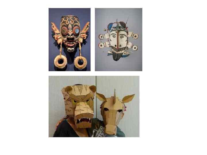 Маска — символ защиты. Образины, хари (как называли маски на Руси) выполняли роль оберега, защитника от злых духов. Они же — символы перехода из мира профанного (обыденного, земного) в мир сакральный. Маска, одна или несколько, — непременный атрибут церемонии. Ее роль выполняли и обычная краска, грим, татуировка или ткань, которой завешивали лица. .