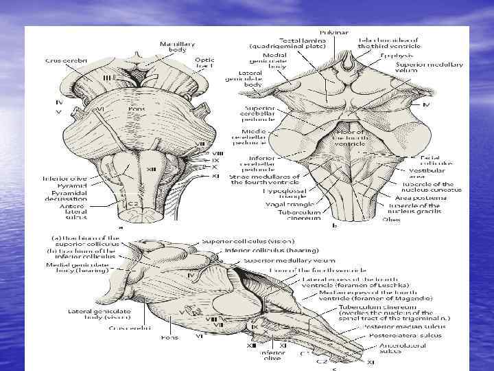 Мозговой ствол (альтернирующие синдромы) • Средний мозг • Мост • Продолговатый мозг
