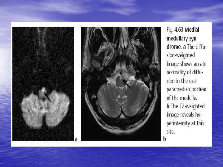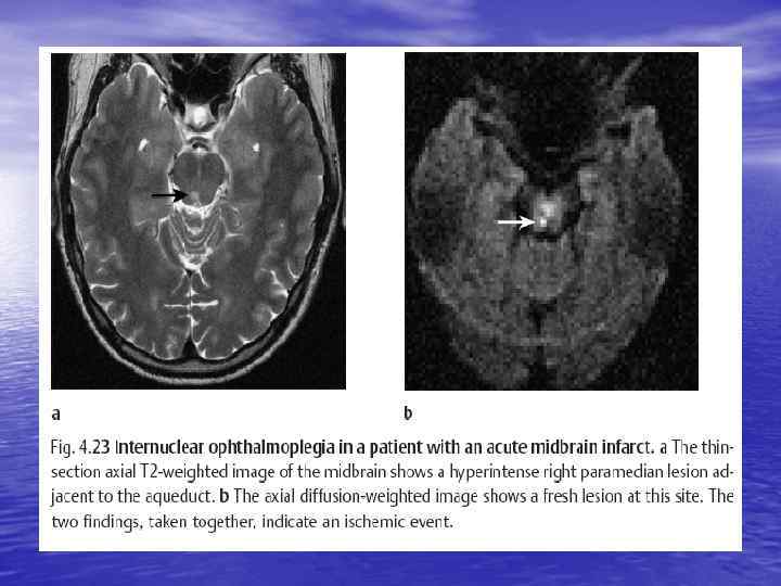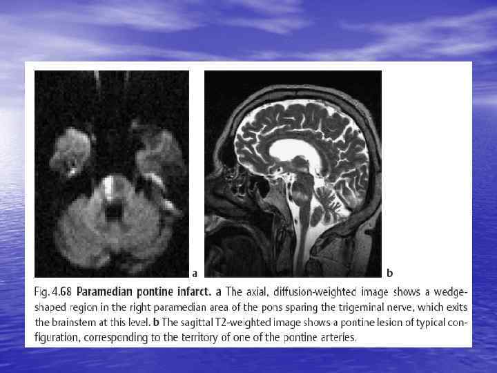 Внутренняя капсула • Центральный гемипарез на противоположной • • • очагу стороне Центральный парез нижней группы мимических мышц на противоположной очагу стороне Центральный парез половины языка (на противоположной очагу стороне) Гемианестезия, гемианопсия (на противоположной очагу стороне)