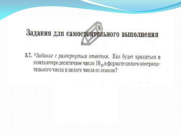 Целые числа в компьютере хранятся в памяти в формате с фиксированной запятой В этом случае каждому разряду ячейки памяти соответствует всегда один и тот же разряд числа, а запятая находится справа после младшего разряда, т. е. вне разрядной сетки.