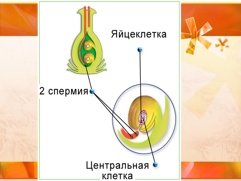 Закрепление 1. Какова роль пыльцевых зерен в созревании спермиев? 2. Биологическая роль пыльцевой трубки. 3. Какие женские клетки участвуют в процессе оплодотворения и где они расположены? 4. В чем сущность двойного оплодотворения?