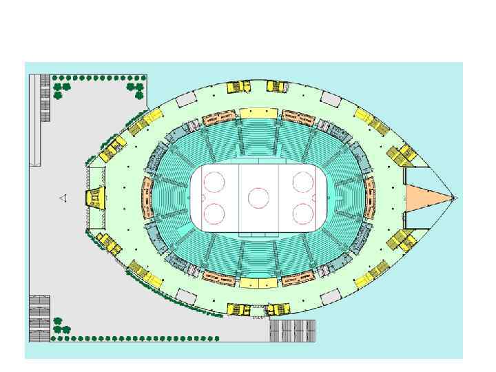 • В этом здании предусмотрены следующие помещения: • паркинг на 15 машиномест; • помещение для льдоуборочного комбайна с выездом на ледовое поле; • вестибюль, включающий в себя ресепшен, кафе, кабинет врача и помещение охраны; • гардероб с местом для переодевания коньков, прокат коньков, санузел; • раздевальные помещения, снабженные душевыми и санузлами; • хореографический зал; • тренажерный зал.