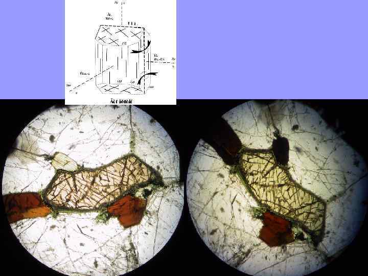 Определение углов погасания Nx Nx Nx N g N p Ny Ny Ny Nx = Np Ny= Ng c. Np= 15 o