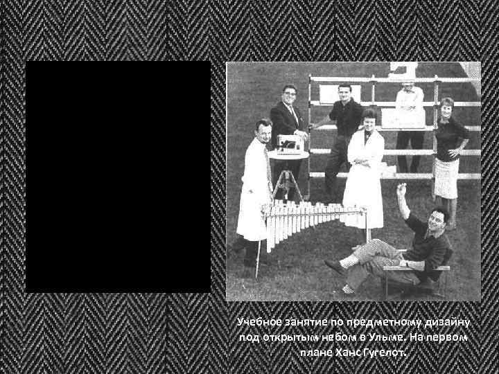 Учебное занятие по предметному дизайну под открытым небом в Ульме. На первом плане Ханс Гугелот.