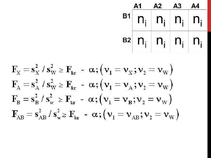 ДВУХФАКТОРНЫЙ ДИСПЕРСИОННЫЙ АНАЛИЗ А 1 В 2 А 3 А 4 ni ni