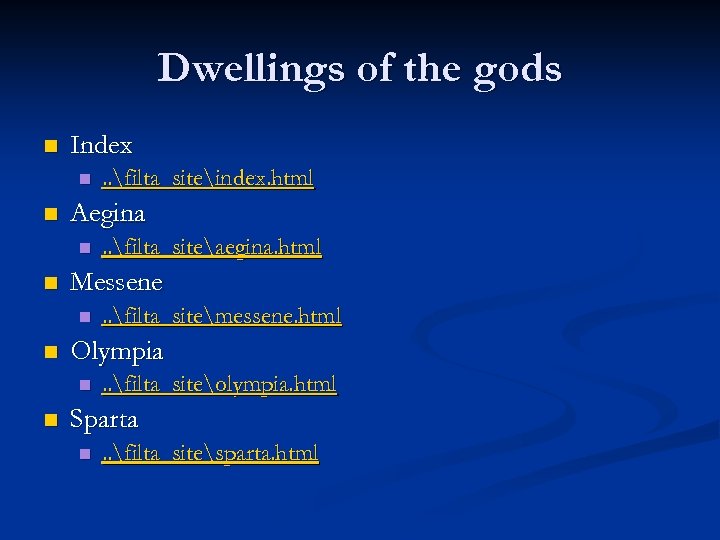 Dwellings of the gods n Index n n Aegina n n . . filta_sitemessene. html Olympia n n . . filta_siteaegina. html Messene n n . . filta_siteindex. html . . filta_siteolympia. html Sparta n . . filta_sitesparta. html