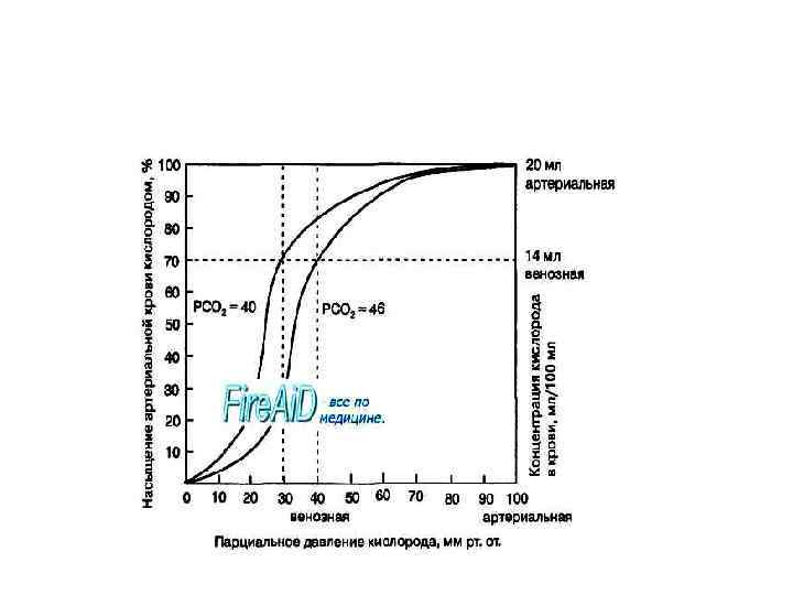Превращение гемоглобина в оксигемоглобин графически выражается кривой диссоциации оксигемоглобина • • • При увеличении РО 2 до 40 мм рт. ст уровень оксигемоглобина возрастает до 75 %; при 60 мм рт. ст. – 90 %. На сродство гемоглобина к кислороду оказывают влияние: - количество 2, 3 -дифосфоглитцерата (уменьшает сродство, т. е. облегчает отдачу О 2); - концентрация Н+ и СО 2 (облегчение отдачи); - температура (при повышении облегчается диссоциация)