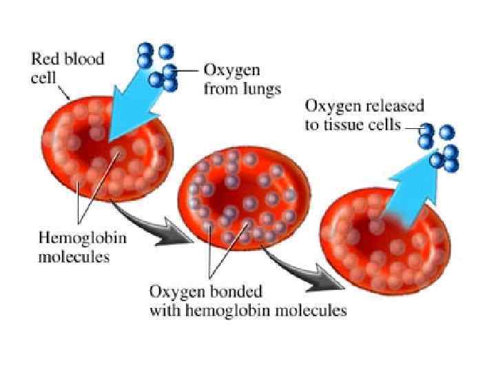 Транспорт газов: n n Кислород соединяется с гемоглобином и разносится по всему организму Углекислый газ из клеток поступает в кровь; 15% соединяется с гемоглобином, 75% переносится плазмой крови в виде раствора