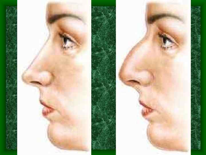 Аномалии наружного носа и полости носа • Ариния – врожденное отсутствие носа. • Дириния – удвоение носа, чаще расщепление верхушки. • Искривление перегородки носа – затруднение носового дыхания и оттока жидкости из околоносовых пазух. • Атрезия хоан – невозможно носовое дыхание.