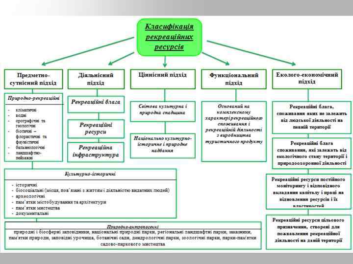 Рекреаційна діяльність – це система заходів, пов’язаних з використанням вільного часу для оздоровчої, культурнопізнавальної діяльності людей на спеціалізованих територіях, що розташовані поза межами їх постійного проживання. Туристична діяльність – це соціальна активність людей, які працюють в туристичній сфері, мають певний соціальний статус у відповідності до посади, яку вони займають, і соціальну роль, що охоплює сукупність посадових обов'язків і службових функцій. Туристсько-рекреаційна діяльність