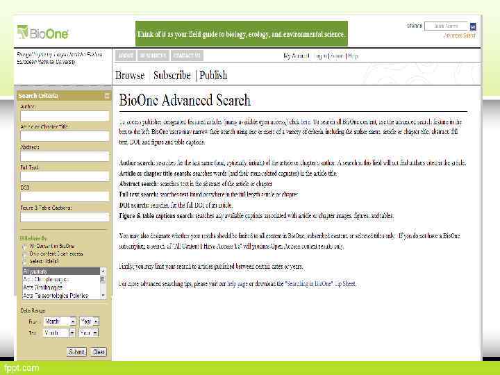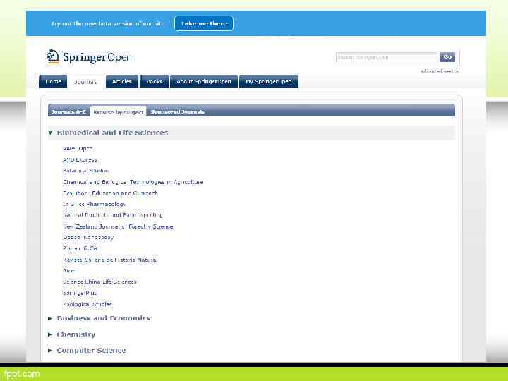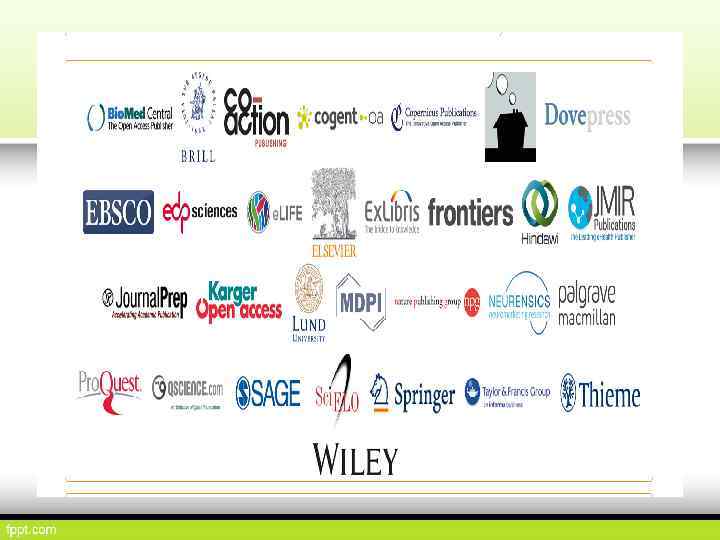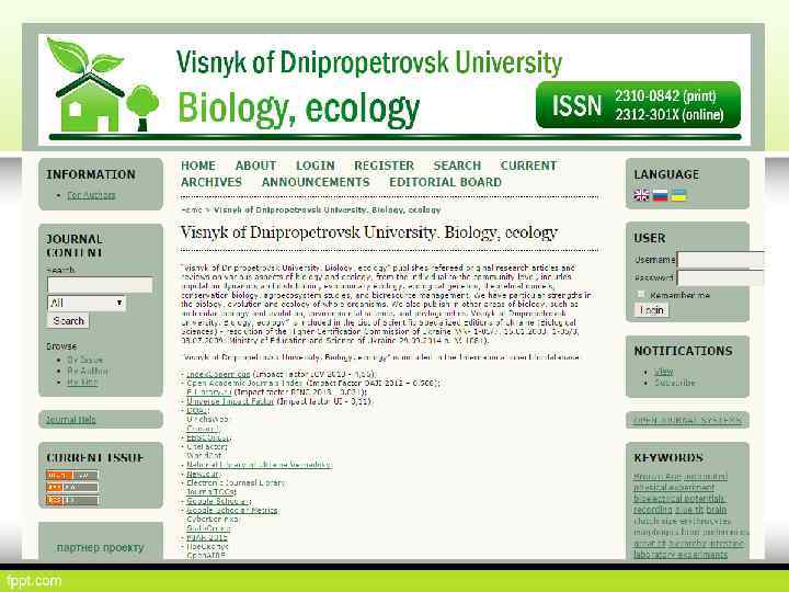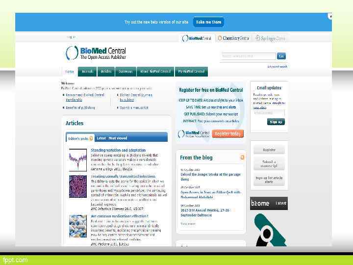 Bio. Med Central http: //www. biomedcentral. com/ • Видавництво, яке першим представило модель відкритого доступу до публікацій з біології, медицини та суміжник наук • 290 рецензованих журналів • Частина журналів індексується Thomson Reuters (ISI), має високий Impact Factor. • Всі статті видавництва індексуються в Scopus and Google Scholar.