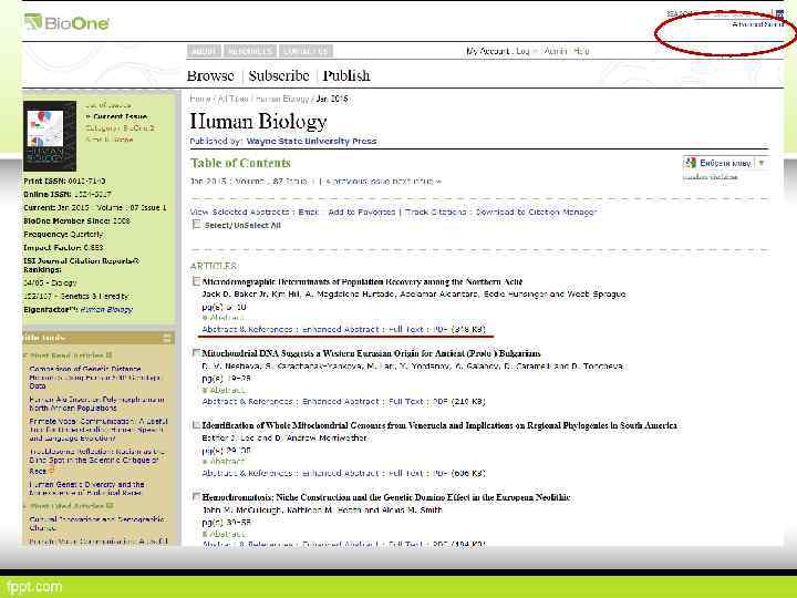 Передплата Bio. One ü 1355 передплатників у 46 країнах n Передплата n Доступ за програмами: Developing World Programs FПро Bio. One REE 31. 1 TRIAL 2. 20 15