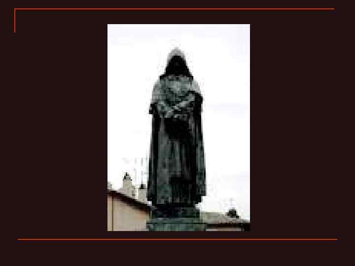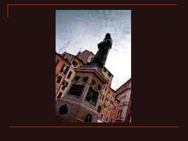 Годы странствий n n Несмотря на покровительство высшей власти Англии, в 1585 он вынужден был фактически сбежать во Францию, затем в Германию, где ему тоже было вскоре запрещено читать лекции. Через некоторое время в Женеве Бруно посадили в тюрьму, и его чуть было не сожгли на костре. Но и в тюрьме он продолжал споры о вере и о Боге. Восемь лет великий мыслитель сидел в тюрьме.