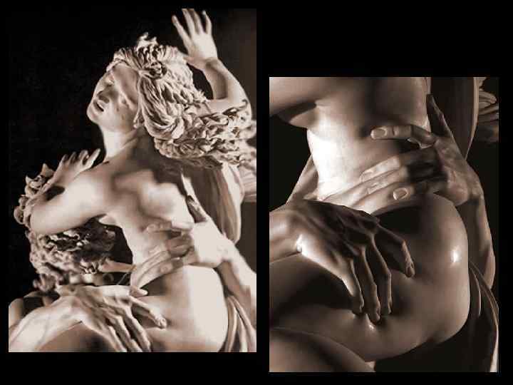 В основе скульптурной композиции лежит древнеримский сюжет. Аполлон преследует нимфу Дафну. В момент, когда Аполлон все же настиг ее, произошло чудо, боги укрыли ее от глаз Аполлона. Аполлон и Дафна 1622 -1625 Мрамор Каррары 243 см Галерея Боргезе, Рим