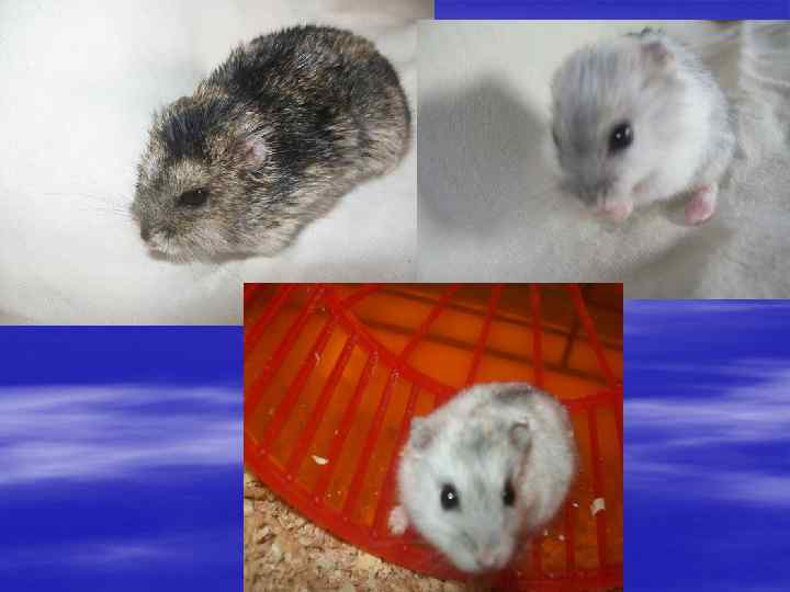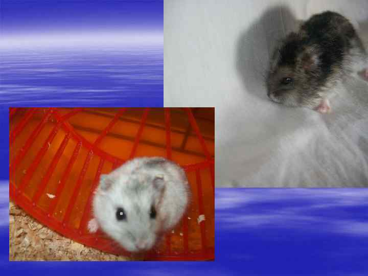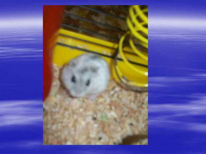 Джунгарские хомяки § Джунгарский хомяк И так вы взяли себе хомячка и теперь емунадо купить террариум или решеточную клетку! Поверьте хомячку нельзя жить вбанке или в ведре! Если ваш хомячок поселиться в банке или в ведре это будетмучение для маленького зверька! Лучше купите ему клетку т. к. к хомячкупоступает много кислорода и он сможет стачивать об решётки зубки! Несколько немаловажных вещей в клетке или террариуме: Домик- он должен быть в клетке постоянно/всегда т. к. хомячку там тепло и уютнои он там СПИТ! Поилка с водой- существует такое мнение что хомячкам не нужно пить, но это нетак! Хомячку нужна постоянно! Колесо/прогулочный водашар- хомячку оно тоже необходимо т. к. хомячок долженбегать! Еда- ну здесь ничего говорить не буду т. к. она должна быть ВСЕГДА!!! Ещё есть куча лесенок, ходиков, трубочек это также можно поместить в клетку к хомяку!