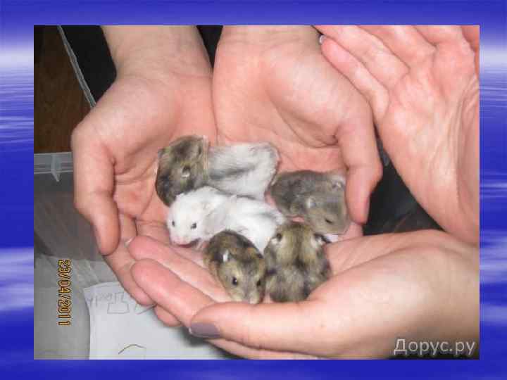 § Разведение Со скольки месяцев хомячка можноначинать разводить? Начиная с 4 недель хомячков можно начинать разводить. (читайте дальше) Но вы лучше подождите и отложите это до 4 -5 месяцев! Что надо делать за 3 дня до родов? 1. Уберите из клетки колесо и домик! 2. Дайте хомячке побольше строительных материалов! 3. Почистите клетку! 4. Отсадите самца! 5. Давайте хомячке белковую пищу до и после родов! 6. Не тревожте её, особенно тогда когда она родит! 7. Оставьте воду в клетке! 8. Дайте самке возможность рожать в завешенной клетке! Завесьте её покрывалом. Хомячата родились!!! Главное не тревожте их до 10 дней! Если хомячонок выпадет то возьмите ложку, обваляйте её в туалетном углу, подберите хомячка ложкой и подложите малыша кмаме! Вдруг вы затревожили мать и она начала есть детей. Есть несколько причин: 1. Вы не давали самке много белковой пищи, а она не обходима во времябеременности и после! 2. Вы тревожили мать, и поэтому она ест детей. 3. Это бывает во время первых родов, и иногда даже не известна причина. У джунгарских хомячков беременность длится 17 -18 дней, может родится около 47 детёнышей.