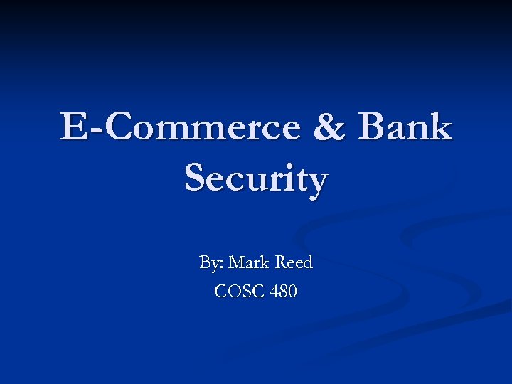 E-Commerce & Bank Security By: Mark Reed COSC 480