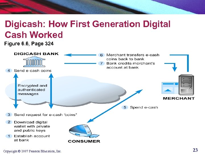 Digicash: How First Generation Digital Cash Worked Figure 6. 6, Page 324 Copyright © 2007 Pearson Education, Inc. 23