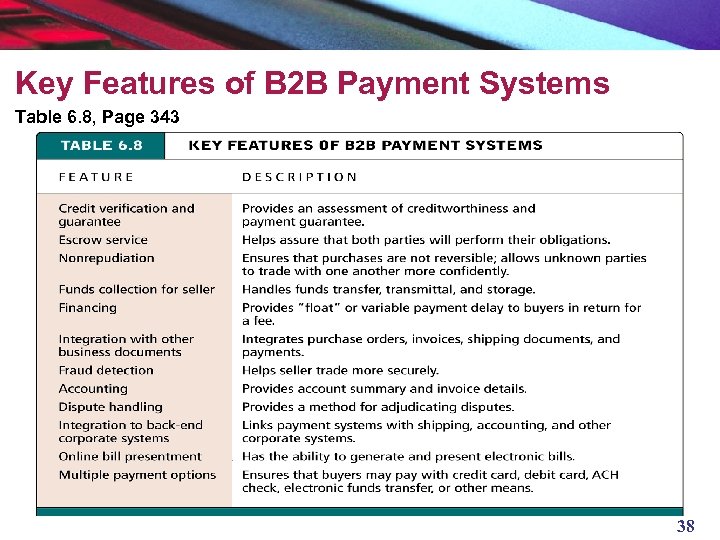Key Features of B 2 B Payment Systems Table 6. 8, Page 343 38