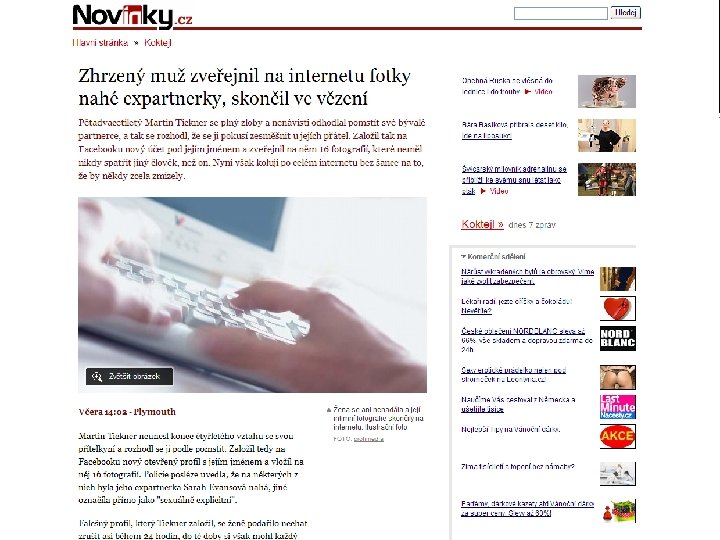 Zveřejňování cizích tajemství s cílem poškodit oběť Příklad Jana se rozešla s Tomášem. V době, kdy spolu chodili, poslala Jana Tomášovi na mobil svou intimní fotografii. Po rozchodu se chtěl Tomáš Janě pomstít, a proto tuto fotografii zveřejnil na internetu. Jana byla následně vystavena posměchu lidí nejen ze svého okolí, ale díky rychlému rozšiřování fotografie v rámci internetu také úplně neznámých lidí.