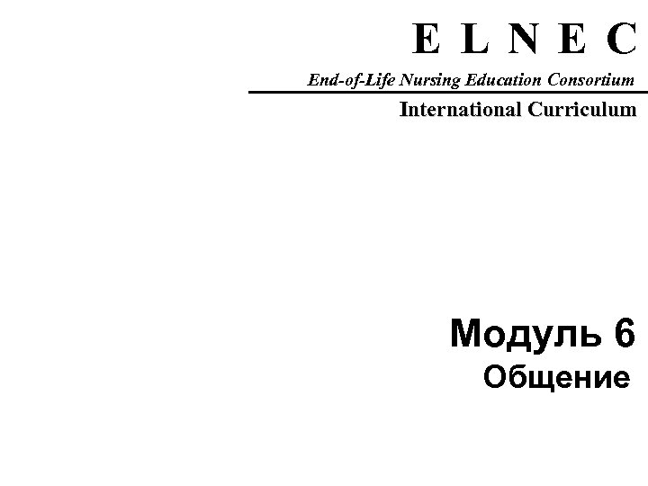 E LNE C End-of-Life Nursing Education Consortium International Curriculum Модуль 6 Общение