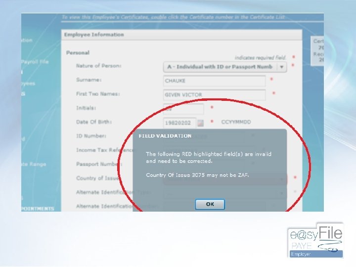 FAQS • Resubmission of older years-always use SARS current validation rules so that recon passes pre-submission validation • SIC and SEZ codes (industry and employment zone) compulsory on certificates and employer details • Making e@sy. File back-ups -The importance (Utilities-database utilities-back up DB directory)