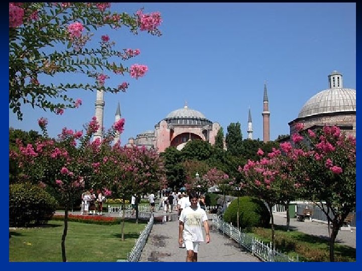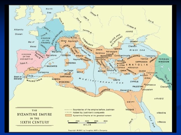 n n n 313 CE - Constantine converts to Christianity 324 CE- The Byzantine Empire, founded when the capital of the Roman Empire was transferred from Rome to Constantinople 326 - CE- the pilgrimage of Constantine’s mother, Empress Helena, to Jerusalem where she finds relics and dedicates the building of churches (Church of the Holy Sepulchre ) n n n n n 527 CE- Golden Age of Byzantine-Justinian 532 -537 -Hagia Sophia -Constantinople (Istanbul) 547 CE- The Emperor Justinian and his Attendants-mosiac 614 CE when the Persians invaded Jerusalem, destroyed many of the churches and monasteries. 638 CE Jerusalem was captured by the Muslim Caliph Umar, six years after the death of Muhammad 685 CE- The Dome of the Rock starts construction by Caliph Abd al. Malikibn Marwan - completing it in 691 CE. 725 to 842 CE -Iconoclastic Controversy in Christian religion 842 CE-the Second Golden Age of Byzantine 1063 - St. Marks –Venice 1453 CE The Fall of Constantinople was the capture of the Byzantine capital by the Ottoman Empire