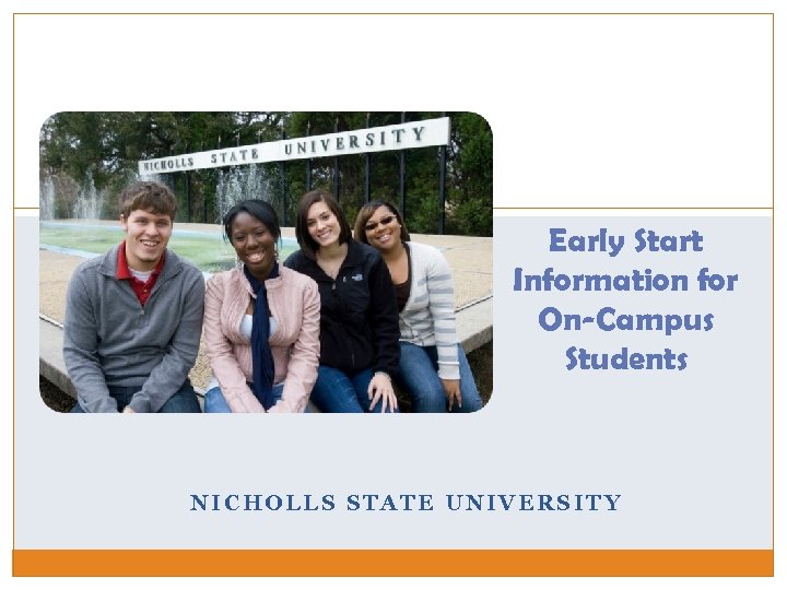 Early Start Information for On-Campus Students NICHOLLS STATE UNIVERSITY