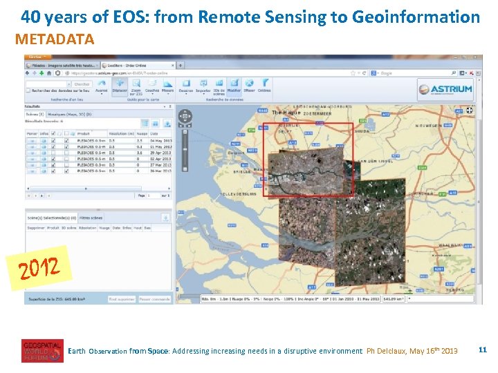 40 years of EOS: from Remote Sensing to Geoinformation METADATA 2012 Earth Observation from Space: Addressing increasing needs in a disruptive environment Ph Delclaux, May 16 th 2013 11
