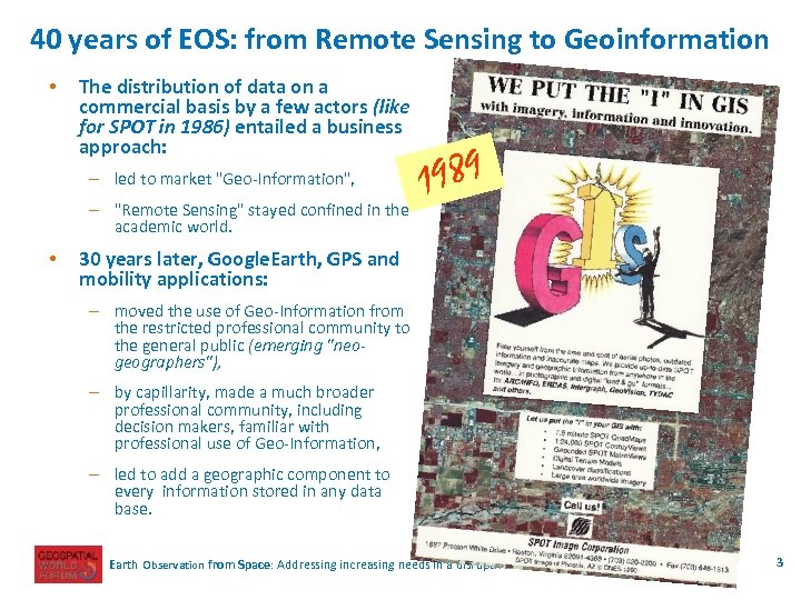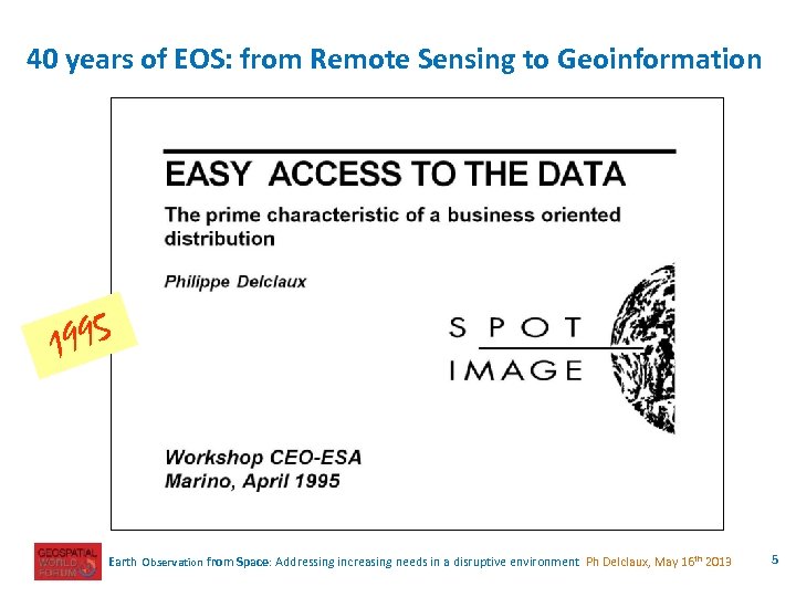 40 years of EOS: from Remote Sensing to Geoinformation 1995 Earth Observation from Space: Addressing increasing needs in a disruptive environment Ph Delclaux, May 16 th 2013 5