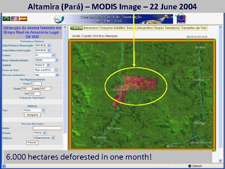 Altamira (Pará) – MODIS Image – 22 June 2004 6. 000 hectares deforested in one month!
