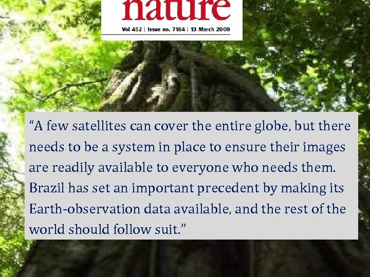 “A few satellites can cover the entire globe, but there needs to be a system in place to ensure their images are readily available to everyone who needs them. Brazil has set an important precedent by making its Earth-observation data available, and the rest of the world should follow suit. ”