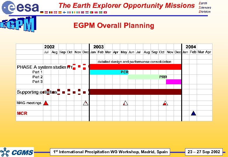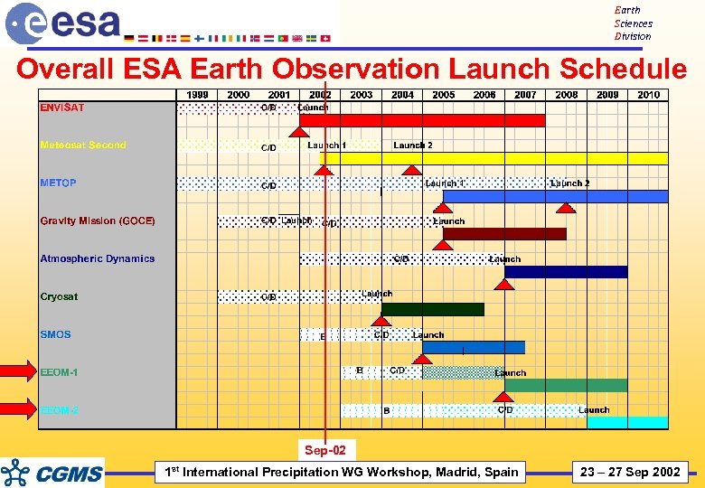 Earth Sciences Division Overall ESA Earth Observation Launch Schedule Sep-02 1 st International Precipitation WG Workshop, Madrid, Spain 23 – 27 Sep 2002
