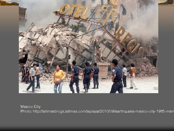 Mexico City Photo: http: //latimesblogs. latimes. com/laplaza/2010/09/earthquake-mexico-city-1985 -mem