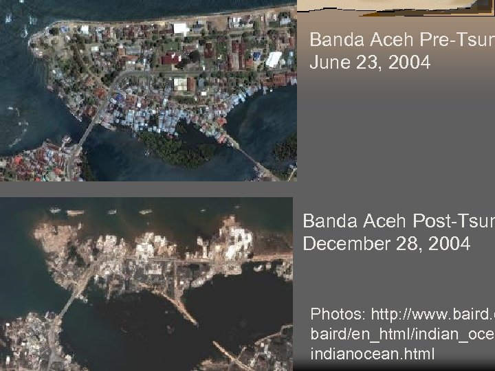 Banda Aceh Pre-Tsun June 23, 2004 Banda Aceh Post-Tsun December 28, 2004 Photos: http: //www. baird. c baird/en_html/indian_ocea indianocean. html