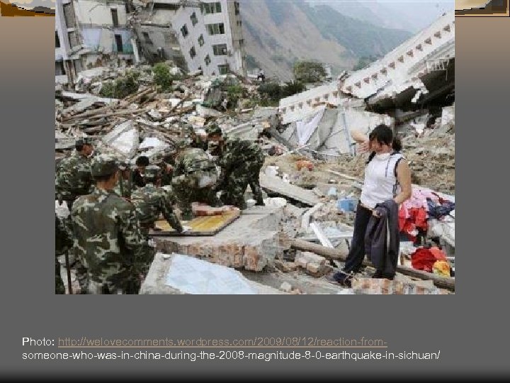 Photo: http: //welovecomments. wordpress. com/2009/08/12/reaction-fromsomeone-who-was-in-china-during-the-2008 -magnitude-8 -0 -earthquake-in-sichuan/