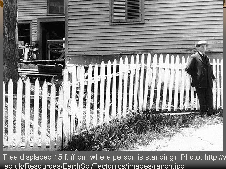 Tree displaced 15 ft (from where person is standing) Photo: http: //w. ac. uk/Resources/Earth. Sci/Tectonics/images/ranch. jpg