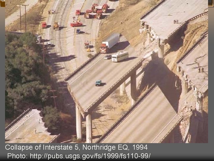 Collapse of Interstate 5, Northridge EQ, 1994 Photo: http: //pubs. usgs. gov/fs/1999/fs 110 -99/