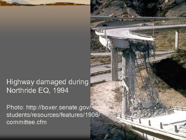 Highway damaged during Northride EQ, 1994 Photo: http: //boxer. senate. gov/ students/resources/features/1906/ committee. cfm